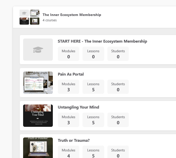 This is my up-and-coming membership space where I will host all the monthly workshops I facilitate from now until I’m done. Look how freaking organized it all is!!!